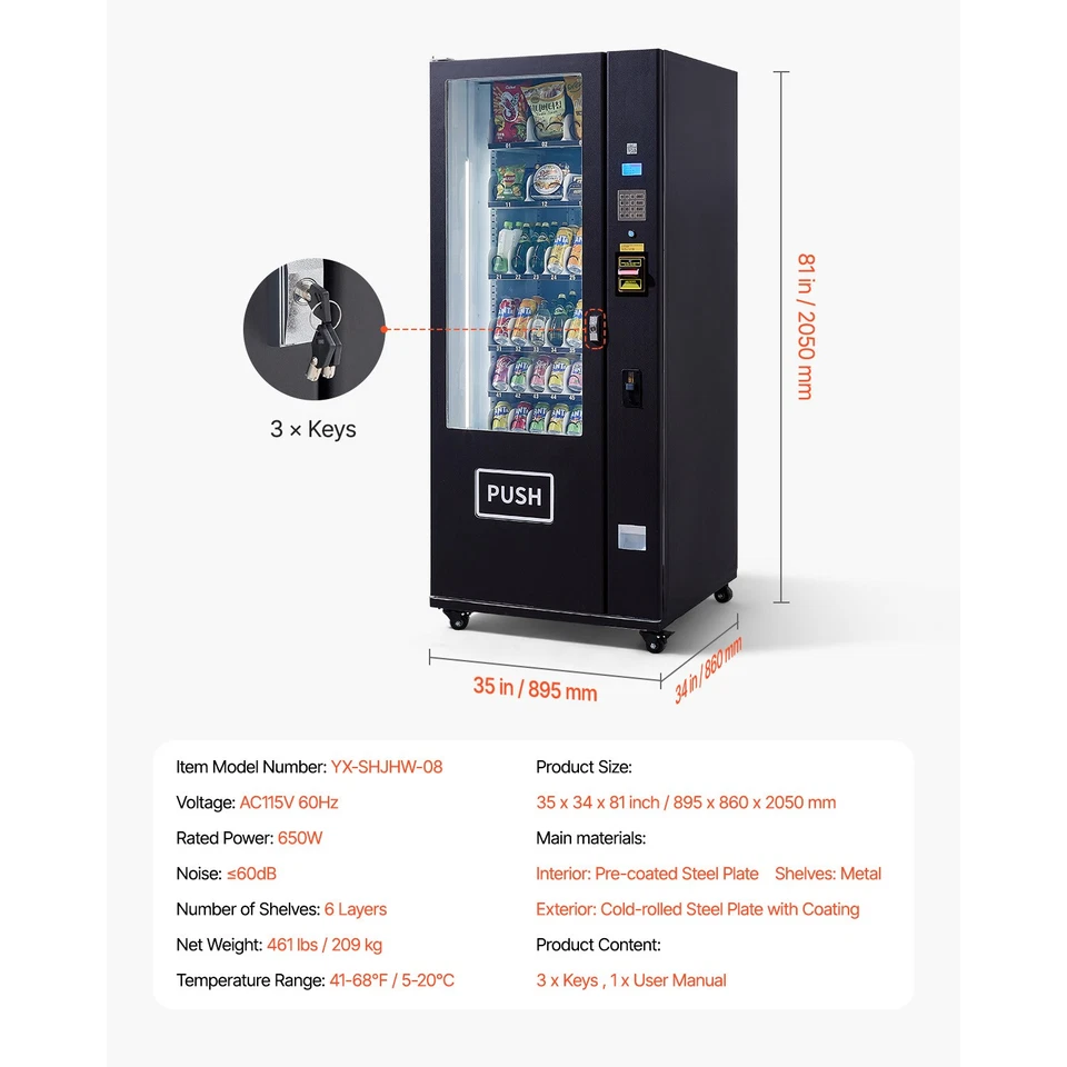 • Long-term Refrigeration: Featuring a high-end compressor with powerful performance for rapid cooling. Utilizes microporous foam technology to effectively block external air and provide long-lasting insulation. This ensures the refrigerated vending machine operates efficiently, saving energy and reducing operational costs
